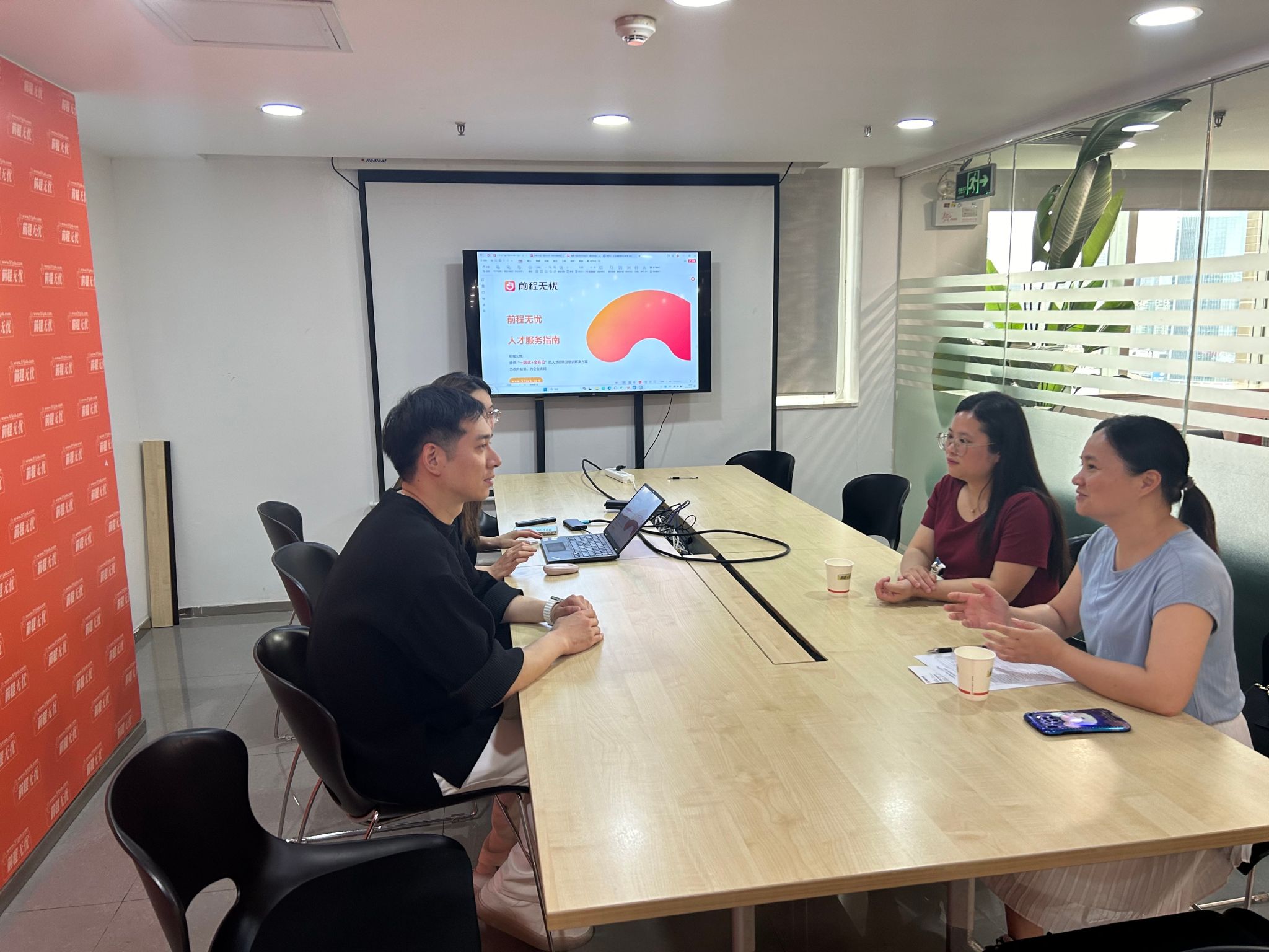 李总监向公司教师详细介绍了公司业务的主要板块、市场布局以及人才规划。金苗则阐述了企业实习生接收及校企合作的相关情况。匡爱花在介绍公司专业设置和校企合作的同时,重点调研了人力资源管理专业的人才培养及实习就业状况,期待与前程无忧展开更为广泛且深入的合作,并对企业为员工提供实习实践机会表示感谢。