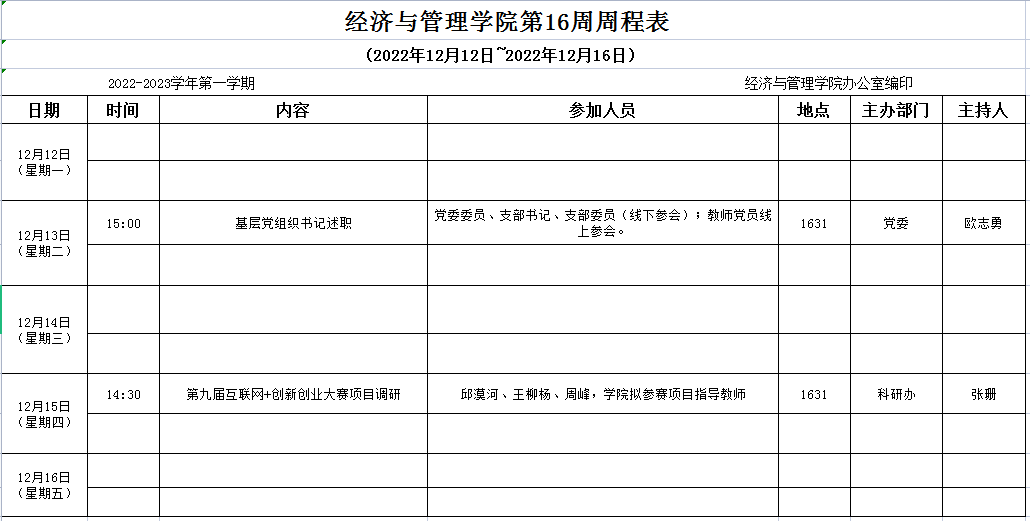 【2022-2023-1】太阳集团tyc151第16周周程表